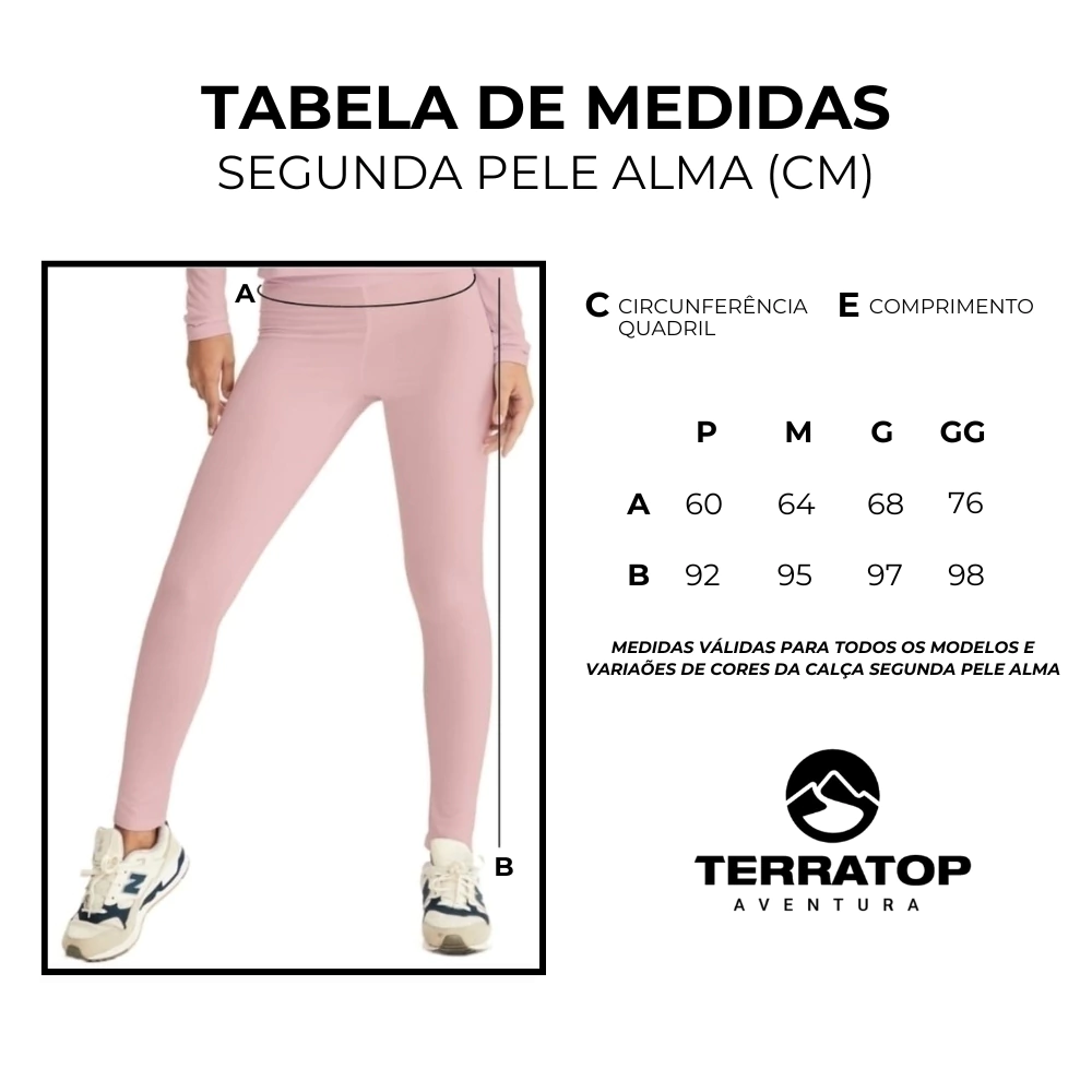 A calça segunda pele Alma é ideal para você usar como primeira camada e se manter sempre bem aquecido. Fabricada no Brasil, conta com proteção UV50+ que oferece proteção solar para sua pele. Possui o lado externo liso, podendo até ser utilizada como legging, e o avesso peluciado, proporcionando maior conforto térmico, tecnologia Dry, o tecido auxilia da respirabilidade do corpo, estabiliza a temperatura corporal e seca com maior facilidade.