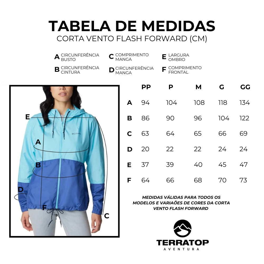 A jaqueta Flash Forward da Columbia é um corta-vento indicada para uso em regiões com muito vento e umidade, em atividades outdoor como corridas, caminhadas e ciclismo, ou simplesmente para uso no dia a dia.