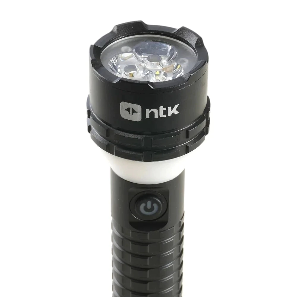 Com corpo em alumínio resistente, é compacta, leve e fácil de transportar. Seu sistema de iluminação 2 em 1 conta com 3 LEDs de 5W e 12 SMDs brancos, além de 4 SMDs vermelhos, permitindo escolher entre feixe concentrado, iluminação difusa ou luz de sinalização. São 5 modos de funcionamento: LED forte, LED fraco, LED estrobo, SMD branco ligado e SMD vermelho estrobo, adaptando-se a diferentes necessidades.
