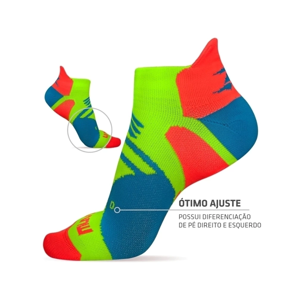 MEIA UNISSEX CANO CURTO DE COMPRESSÃO ARROW ROSA E VERDE LIMÃO 060130011RS MUVIN